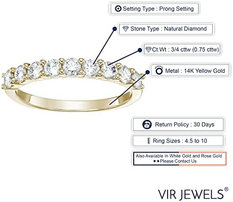 1/5 cttw to 3/4 cttw Round Diamond Wedding Band for Women 14K Gold 9 Stones Prong Set, Size 4.5-10