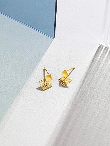24K Gold Earrings for Women, Hypoallergenic Gold Stud Earrings Square Lightweight Fashion Small Earrings for Mom Girlfriend Gifts
