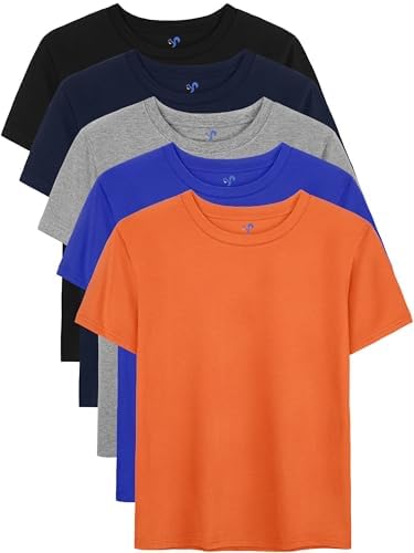 5 Pack Boys Shirts Short Sleeve Shirts for Boys Toddler Cotton Tee Solid T-Shirts Kids Tshirt Summer Tops 2-18 Years