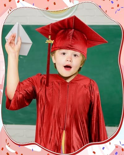 6 Set Preschool Graduation Cap and Gown Set Kindergarten Grad Gowns Children Graduation Cap with 2024 Grad Tassel