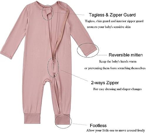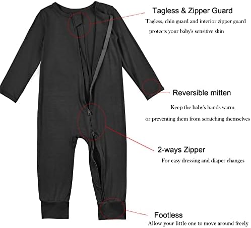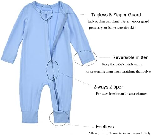 Aablexema Baby Footless Pajamas Zipper with Mitten, Rayon from Bamboo, Infant Long Sleeve Romper Pjs
