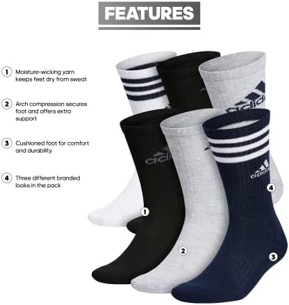 adidas Men's Athletic Cushioned Crew Socks with Arch Compression for a Secure Fit (6-Pair)