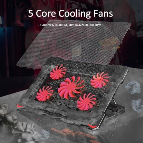 AICHESON Laptop Cooling Pad 5 Fans Up to 17.3 Inch Heavy Notebook Cooler, Blue LED Lights, 2 USB Ports, S035, Blue-5fans