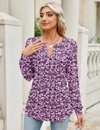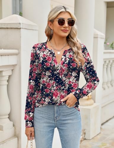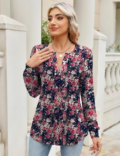 AKEWEI Womens Long Sleeve Shirts Puff Sleeve V Neck Pleated Shirts Loose Fit Blouses for Dressy Casual 2025 Spring Tops