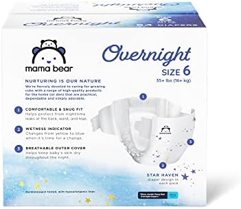 Amazon Brand - Mama Bear Overnight Diapers, Hypoallergenic, Size 6 (54 count), Disposable Baby Diapers, Night Time Protection
