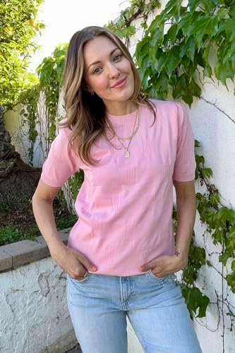 Arach&Cloz Womens Summer Tops 2024 Lightweight Short Sleeve Dressy Blouse Shirts Crew Neck Knit Fashion Sweaters