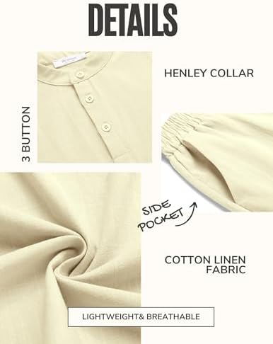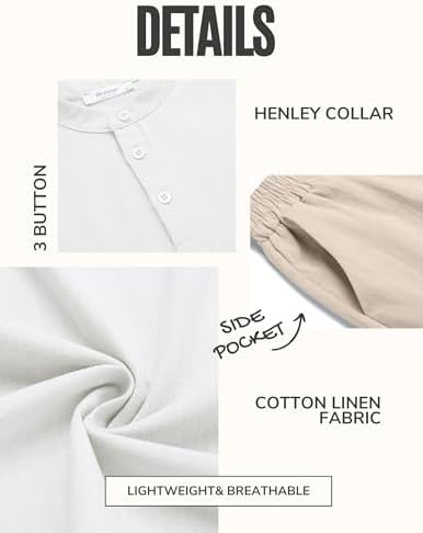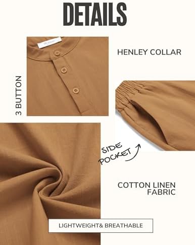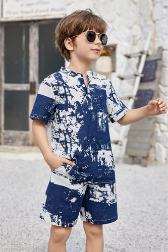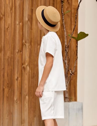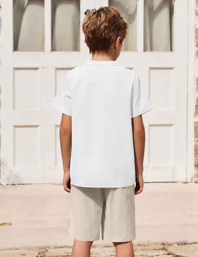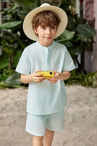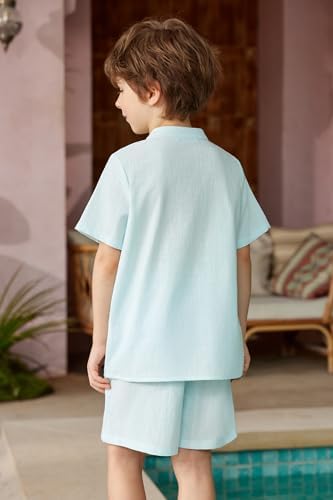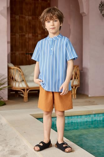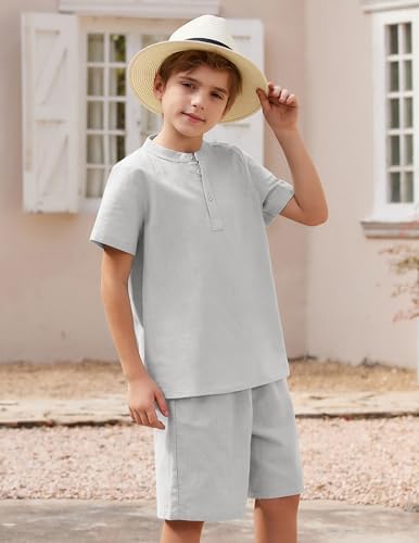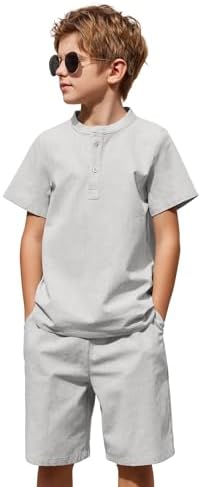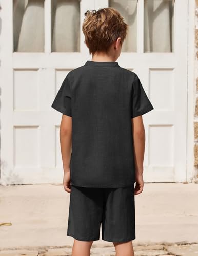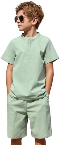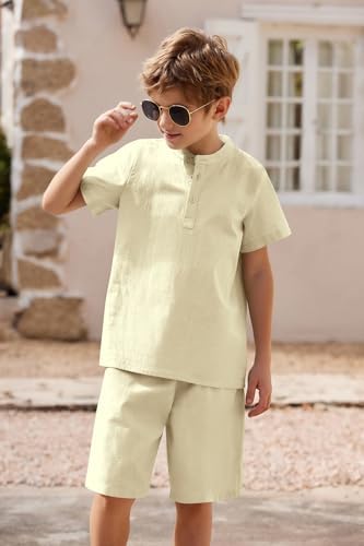Arshiner Boy's 2 Pieces Cotton Linen Set Casual Henley Shirts Short Sleeve Beach Shorts Summer Outfits for 5-12 Years Kids