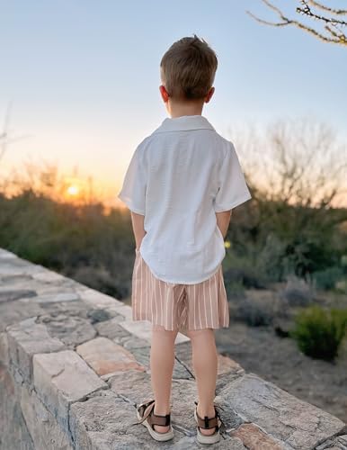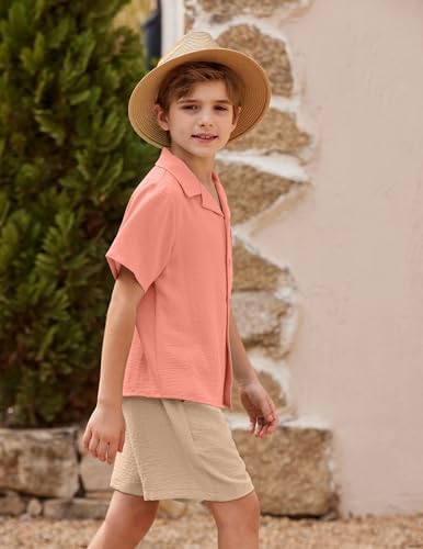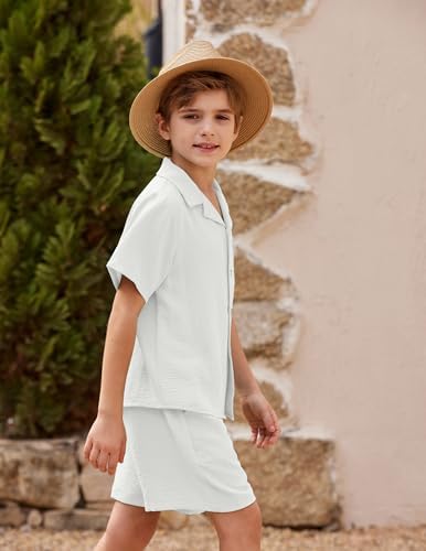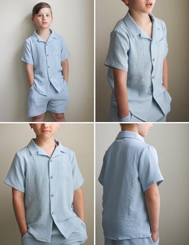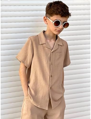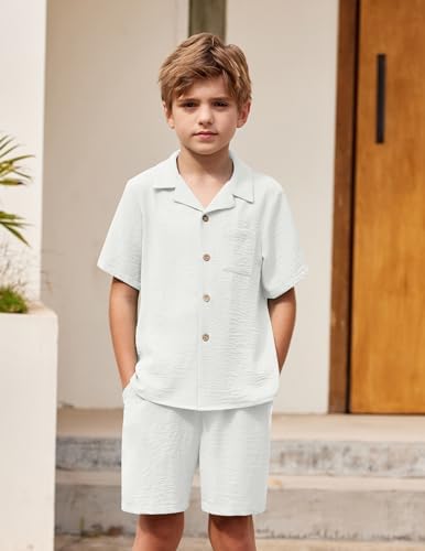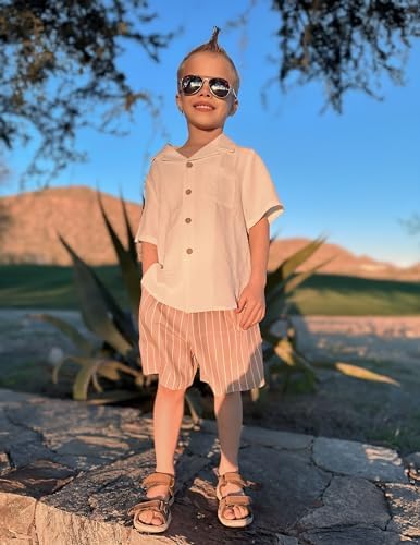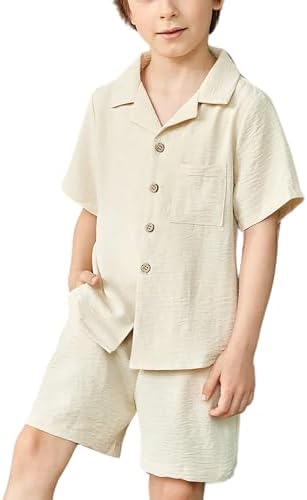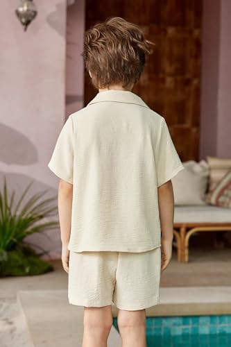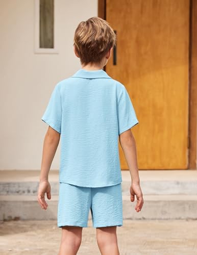 Arshiner Boys 2 Pieces Summer Beach Outfits Short Sleeve Button Down Shirts and Shorts Vacation Texture Sets for Kids