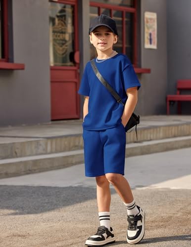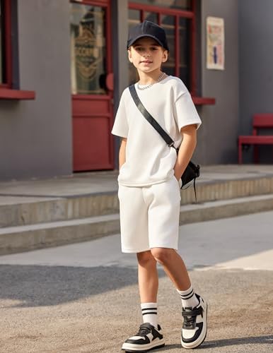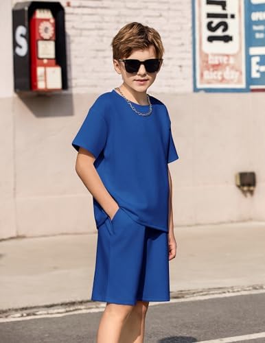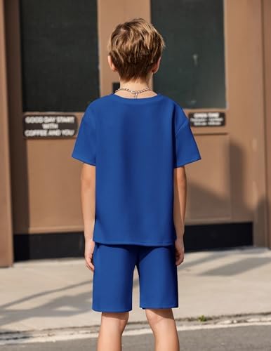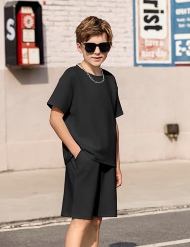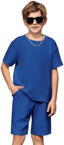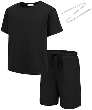 Arshiner Boys Drop Shoulder T-Shirt & Drawstring Waist Shorts with Chain Necklace Summer Casual Outfits (5-12 Years)