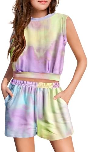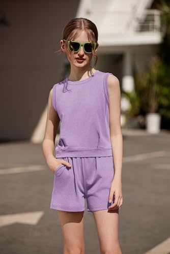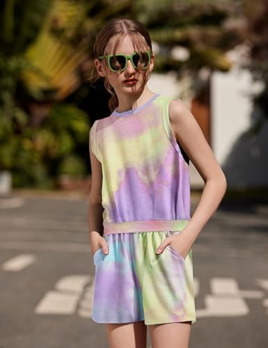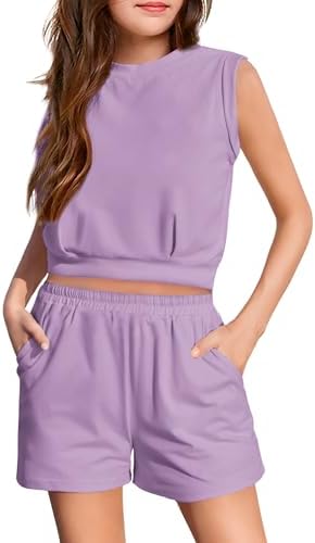 Arshiner Girl's 2 Piece Outfits Sleeveless Round Neck Tank Top and Shorts with Pockets Casual Summer Shorts Sets