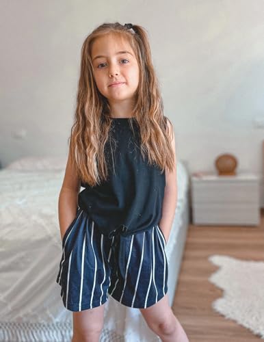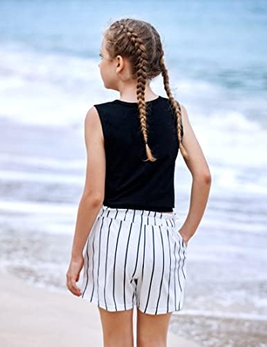 Arshiner Girl's 2 Piece Outfits Tie Knot Tank Top and Paperbag Waist Pocketed Summer Short Sets