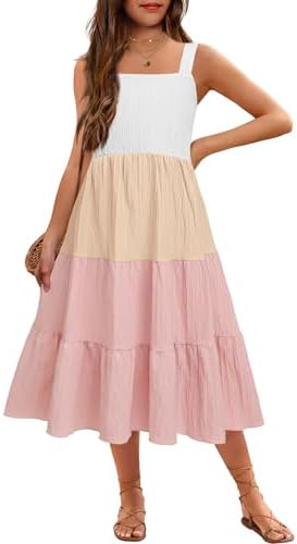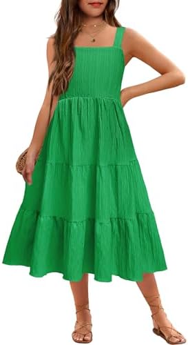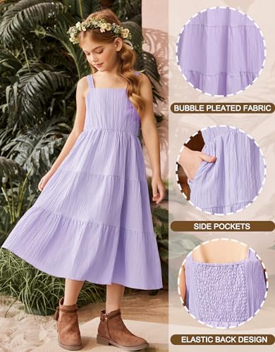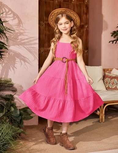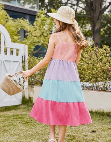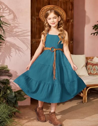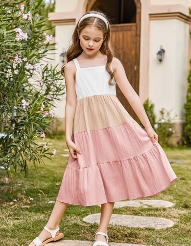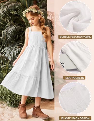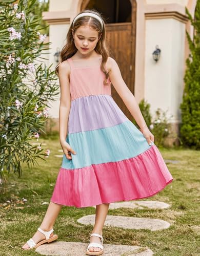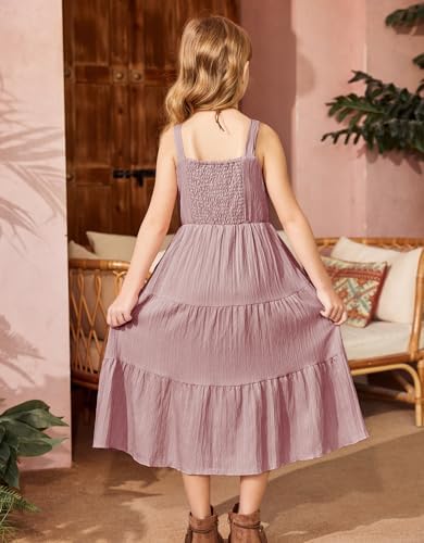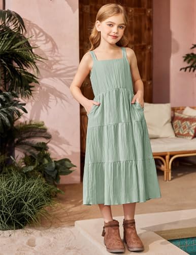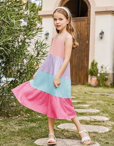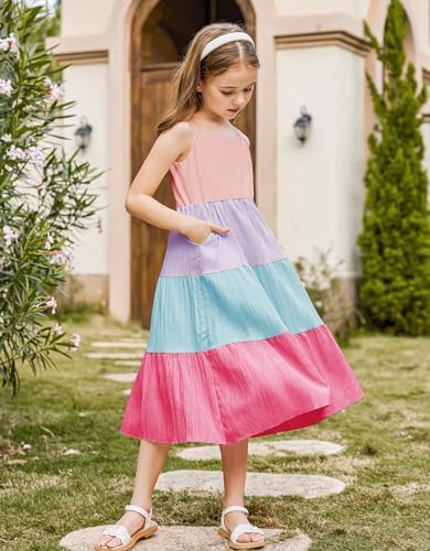 Arshiner Girl's Sundresses Summer Boho Strap Tiered Cami Maxi Dresses with Pockets