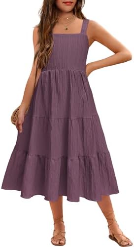 Arshiner Girl's Summer Sundress Spaghetti Strap Solid Linen Midi Dress Casual Cami Dresses