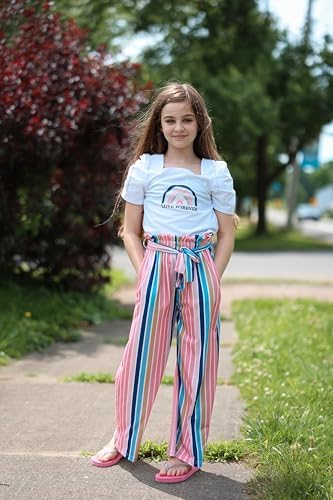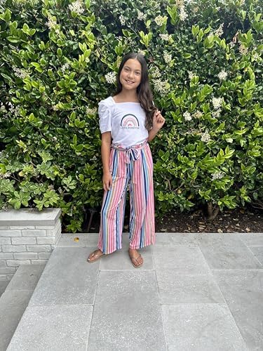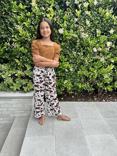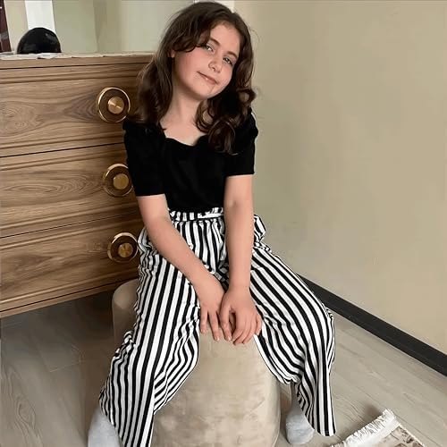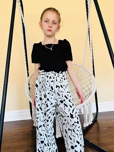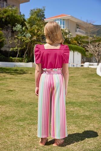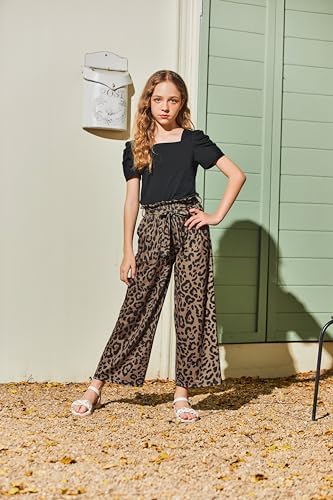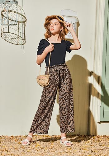 Arshiner Girls 2 Pieces Outfits Kids Square Neck Puff Sleeve Tops and Pants Set with Pockets 6-14 Years