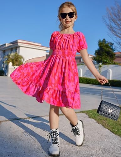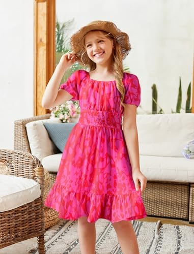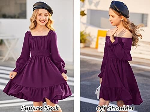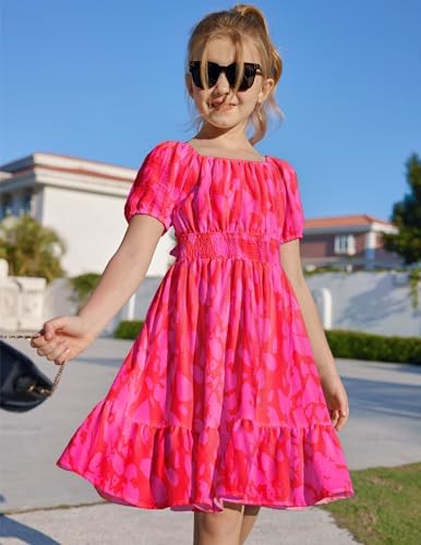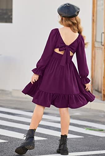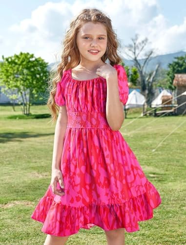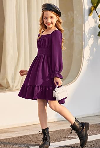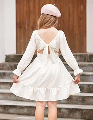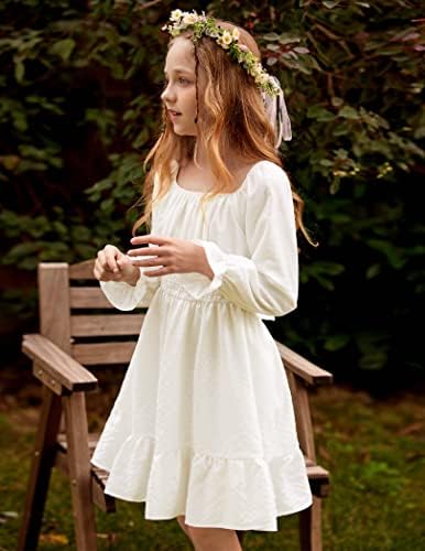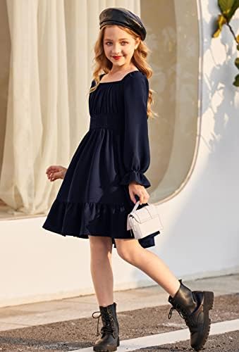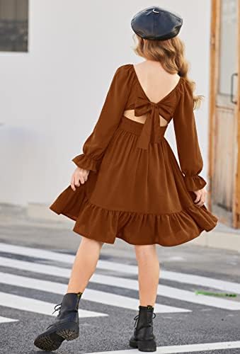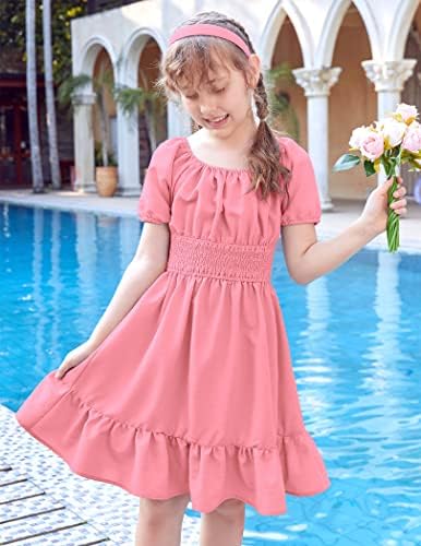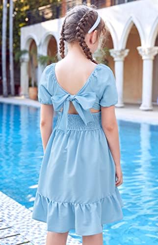 Arshiner Girls Dresses Square Neck Cut Out Shirred Party Cute Tween Dress
