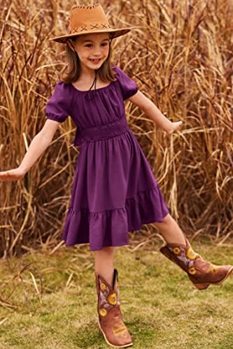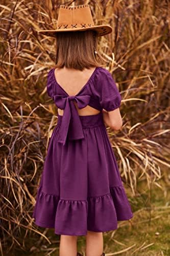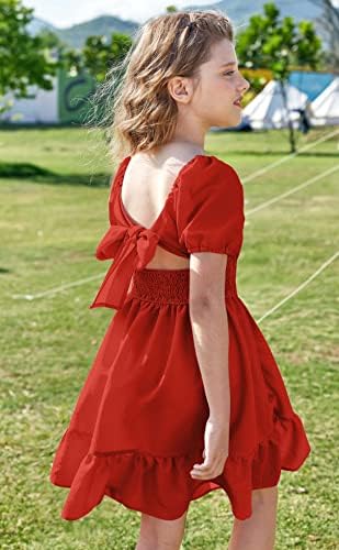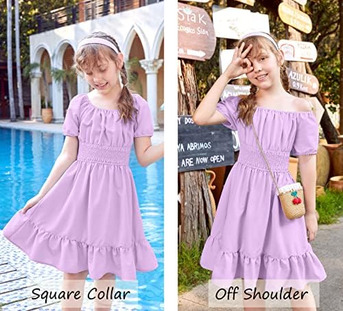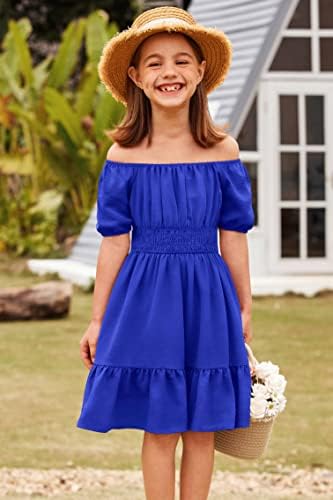 Arshiner Girls Tie Back Short Sleeve Ruffle Hem Off Shoulder Casual Elegant Dresses 4-12 Years