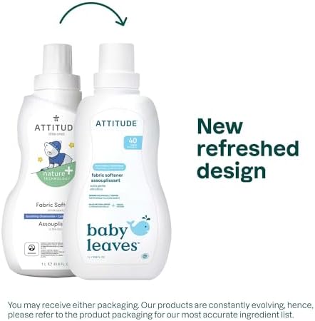 ATTITUDE Baby Fabric Softener, Plant and Mineral-Based, HE, Vegan Laundry Products, Sweet Lullaby, 40 Loads, 33.8 Fl Oz