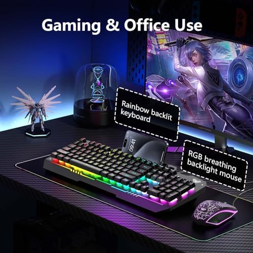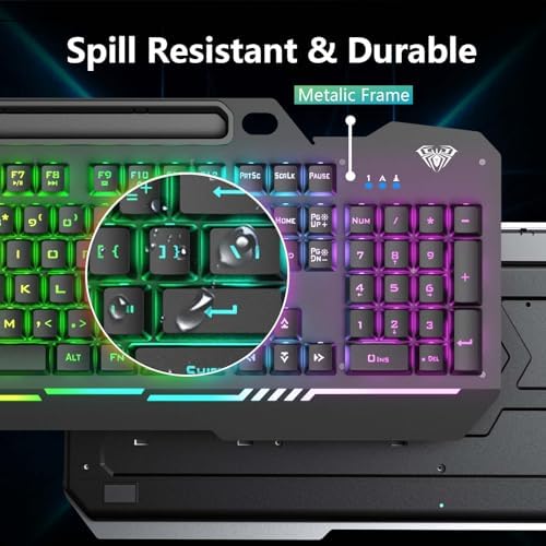 AULA Keyboard, T102 104 Keys Gaming Keyboard and Mouse Combo with RGB Backlit Quiet Computer Keyboard, All-Metal Panel, Waterproof Light Up PC Keyboard, USB Wired Keyboard for MAC Xbox PC Gamers