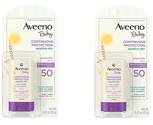 Aveeno Baby Continuous Protection Mineral Sunscreen Stick for Sensitive Skin with Broad Spectrum SPF 50 Protection for Face & Body, Naturally Sourced 100% Zinc Oxide, Travel Size, 0.47 oz