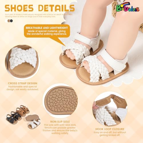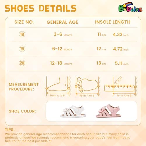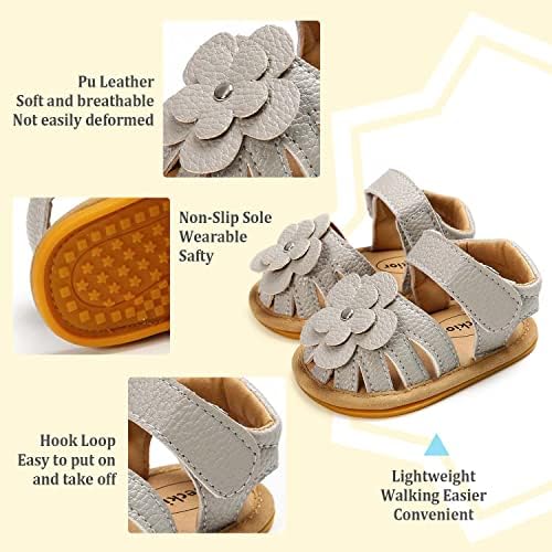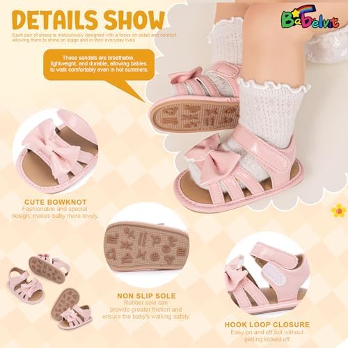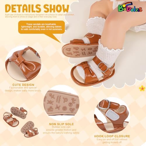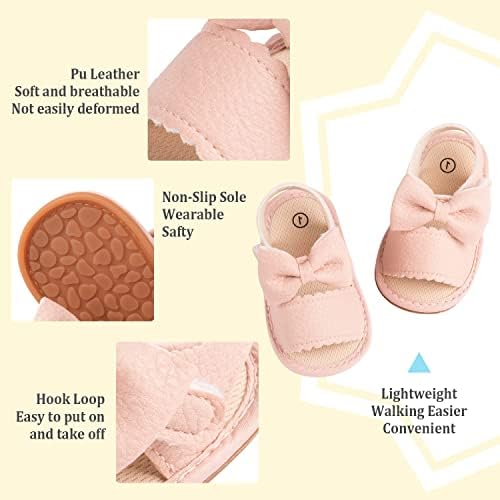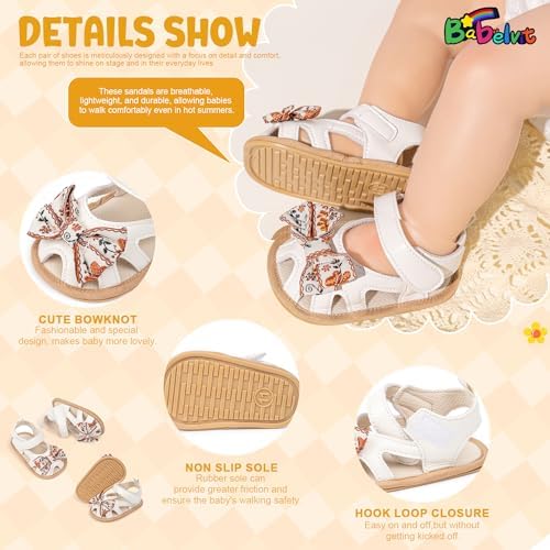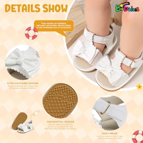Babelvit Infant Baby Girl Boy Sandals Comfort Premium Summer Outdoor Casual Beach Shoes with Flower Bowknot Anti Slip Rubber Sole Newborn Toddler Prewalker First Walking Shoes