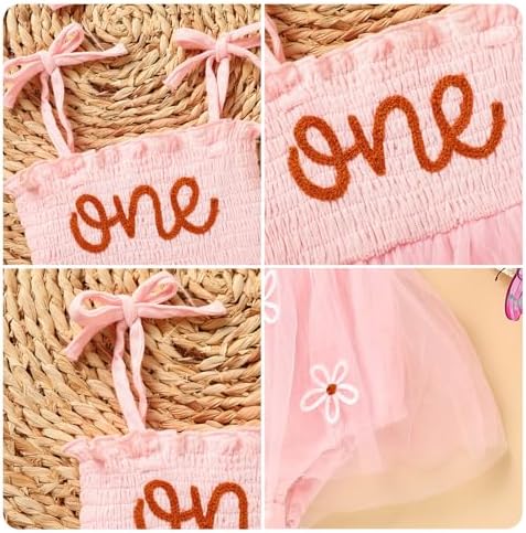 Baby Girl 1st Birthday Clothes One Year Old Tulle Romper Sleeveless Bodysuit Cake Smash Outfits