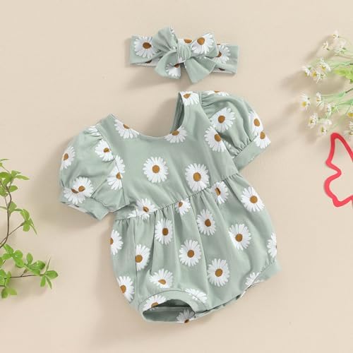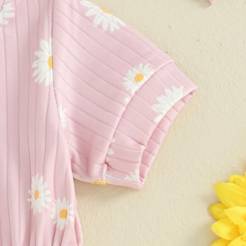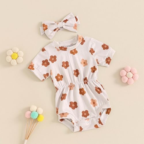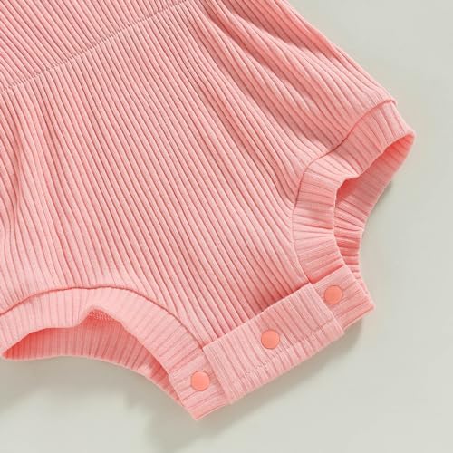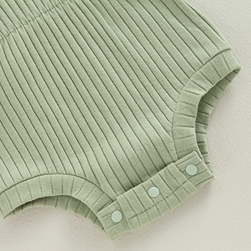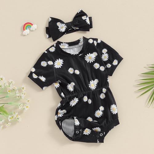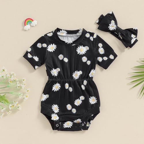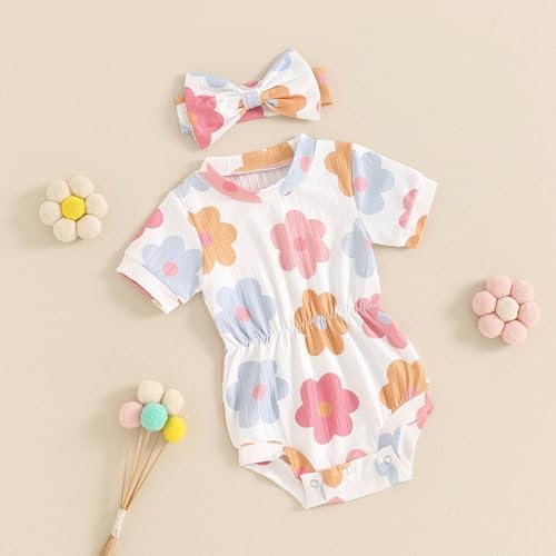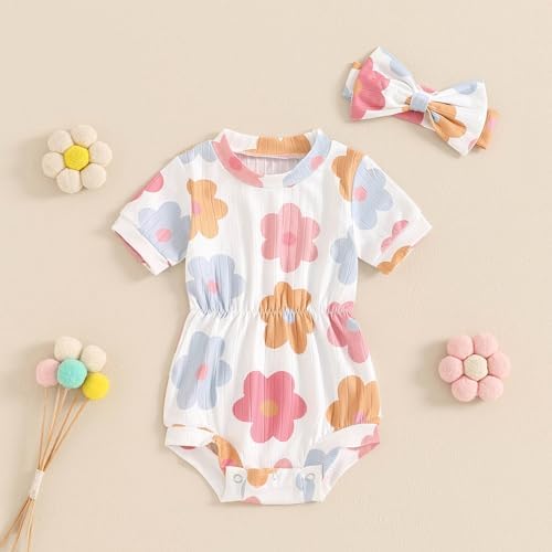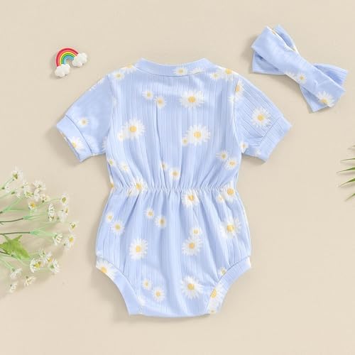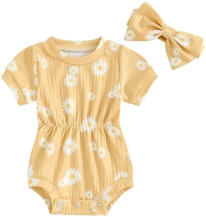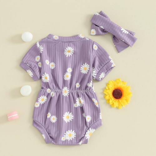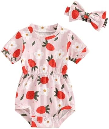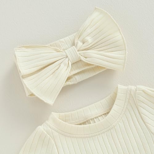 Baby Girl Summer Clothes Ribbed Short Sleeve Romper Solid Color Bodysuits Bow Headband Outfit Newborn Girl Jumpsuit
