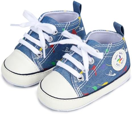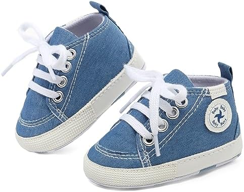 Baby Girls Boys Shoes Soft Anti-Slip Sole Newborn First Walkers Star High Top Canvas Denim Unisex Infant Sneaker