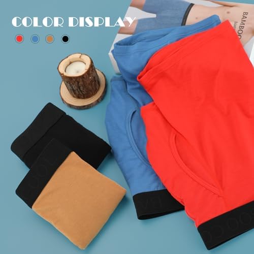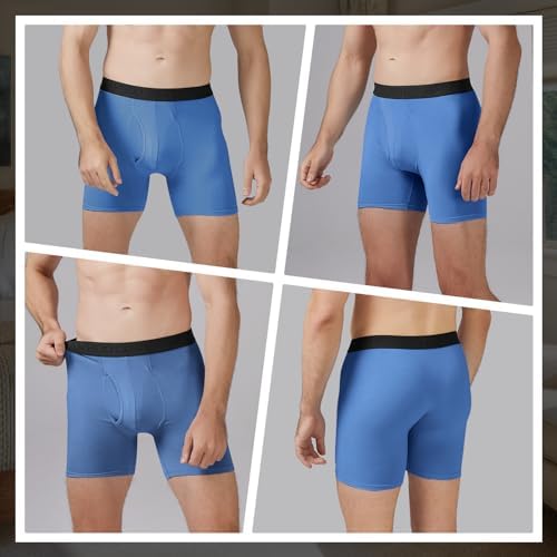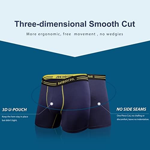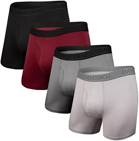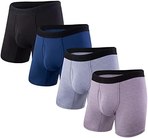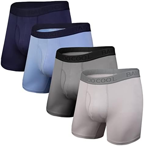 BAMBOO COOL Men's Underwear Boxer Briefs Fly with Built-in 3D Pouch Comfortable Cool Underwear for Men 4 Pack