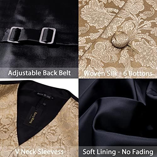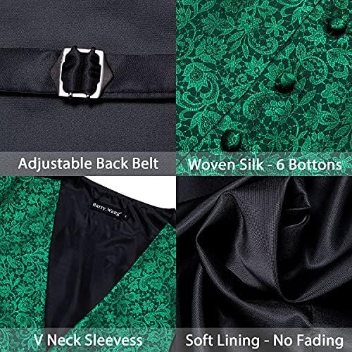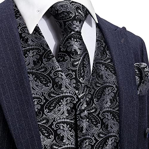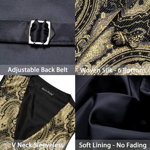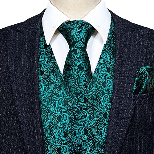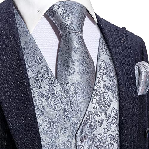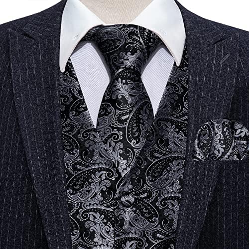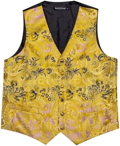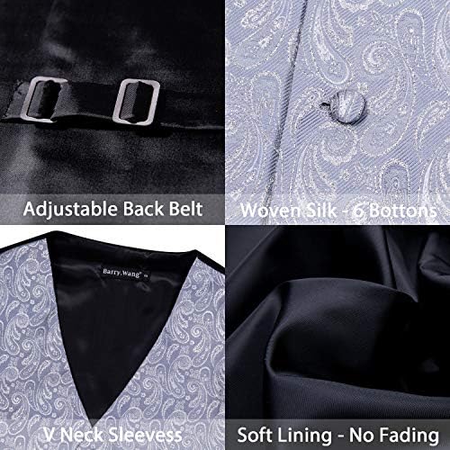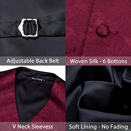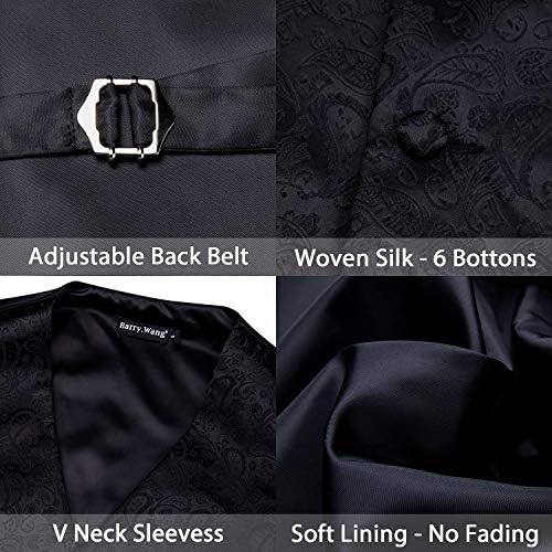 Barry.Wang Formal Men Vest Paisley Jacquard Silk Tie Suit Waistcoat Set Wedding 5PCS