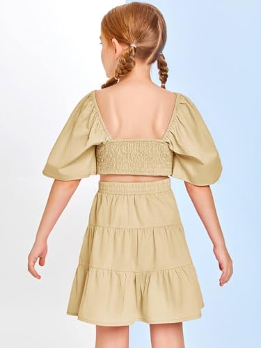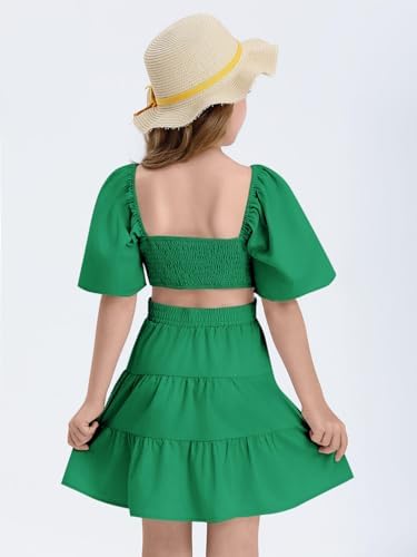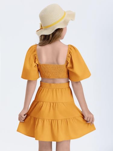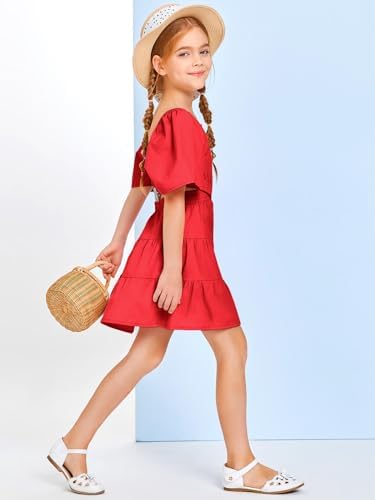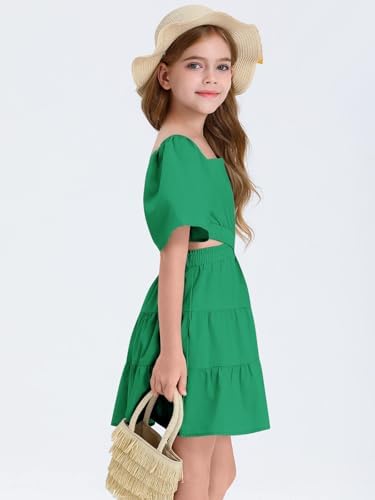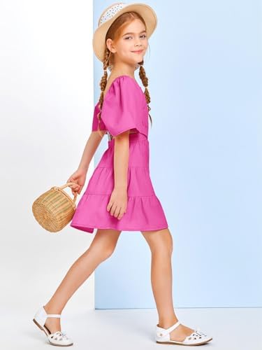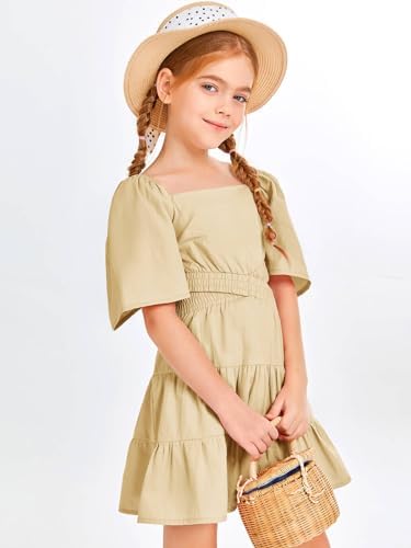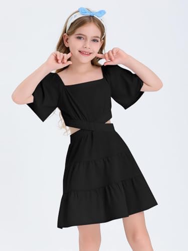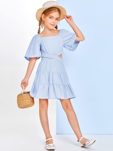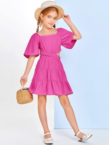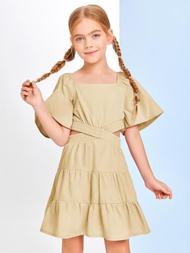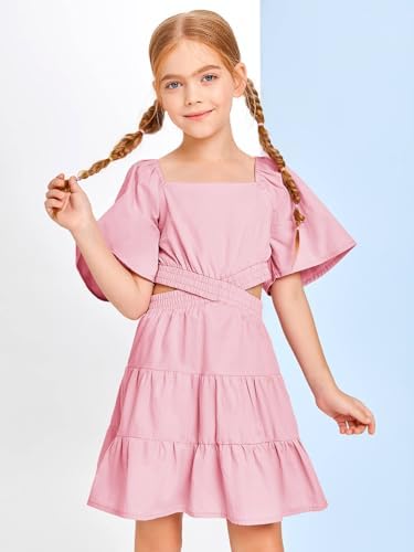 Arshiner Girls Dresses Square Neck Cut Out Shirred Party Cute Tween Dress