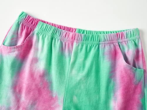 Beezizac Tie Dye Pajamas for Girls - 100% Cotton Glitter Butterfly Cat Summer Short Sleeve PJ Set Tween Clothes Size 4T - 18