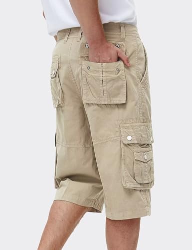 BEST SOUTH Men's Capri Long Twill Cargo Shorts below Knee 13 Inches Cotton Relaxed Fit Casual Multi-Pocket