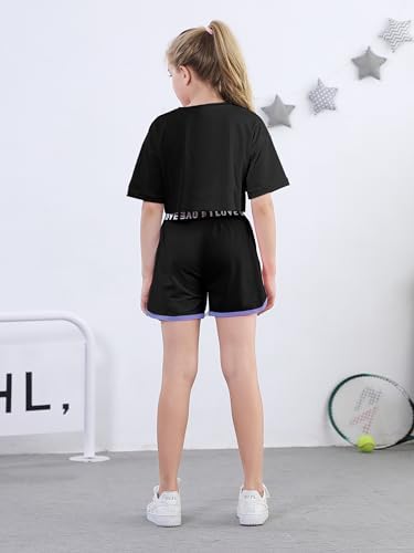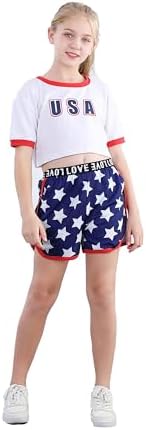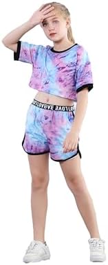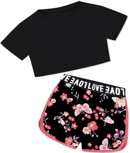 Bestuline Girl's 2 Piece Outfits Short Sleeve Summer Crop Top Shorts Set,3-14 Years