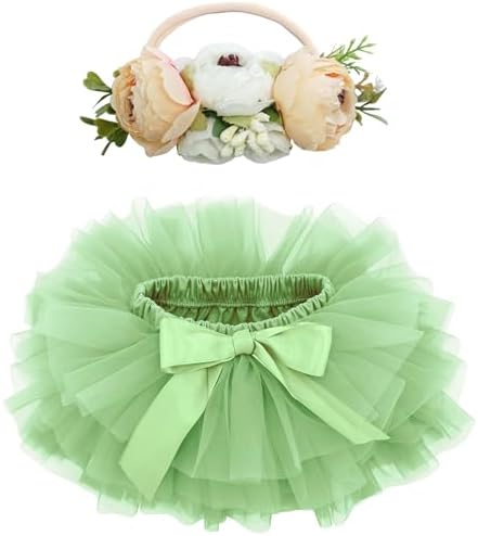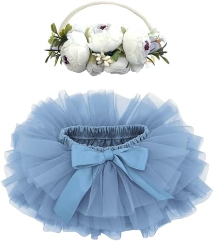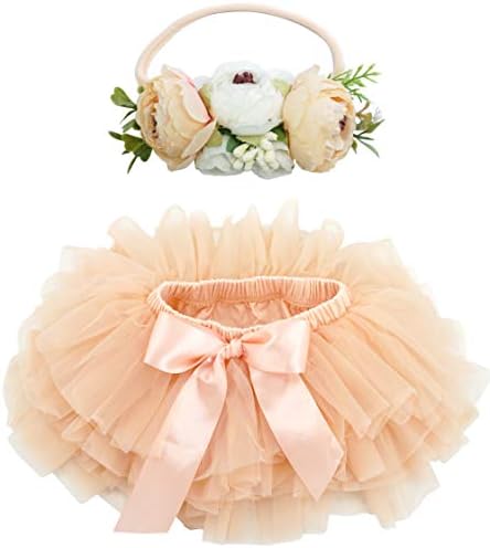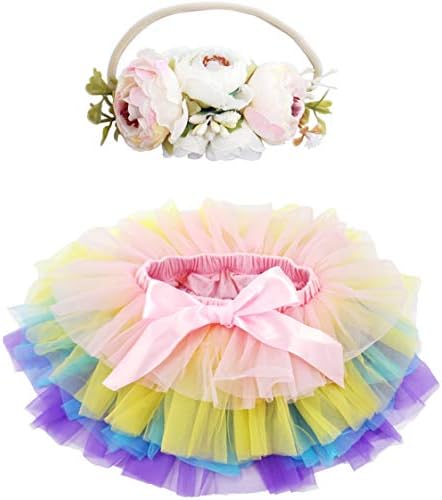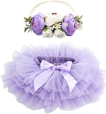BGFKS Baby Girls Soft Fluffy Tutu Skirt with Diaper Cover,Toddler Girl Tutu Skirt Sets with Flower Headband.