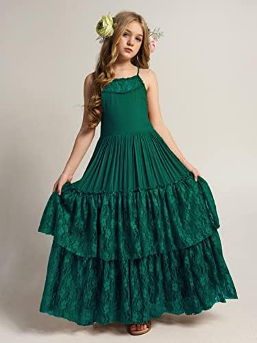 BIBIHOU Girls Kids Lace Back Full-Length Backless Tulle Party Holiday Formal Flower Girl Dress