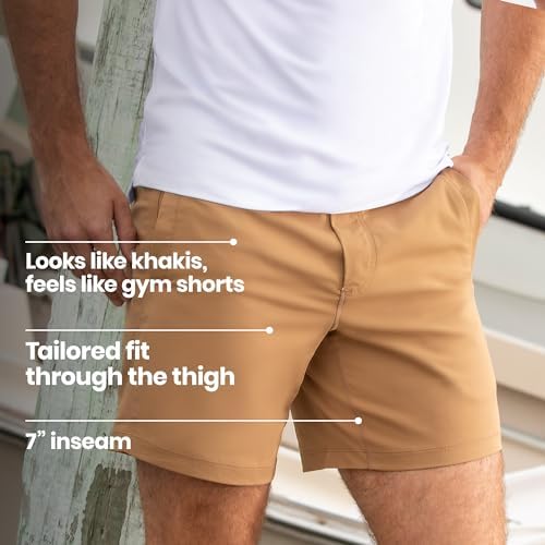 birddogs Mens Khaki Shorts – Casual, Slim Fit, Stretch Short with Built-in Liner for Comfort – Regular Length, 7” Inseam