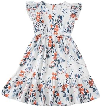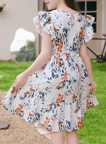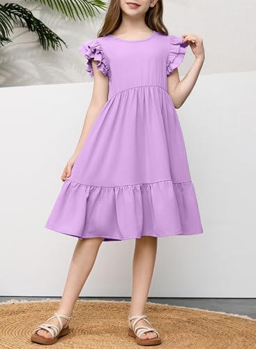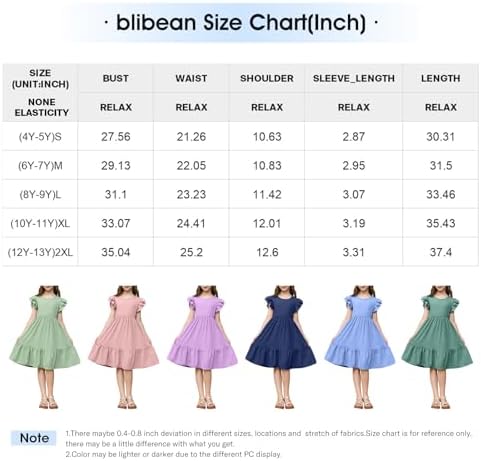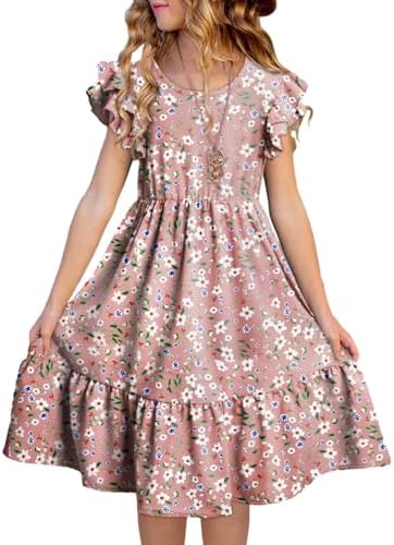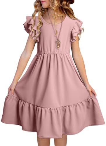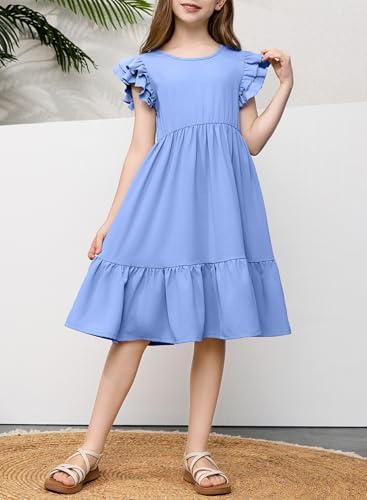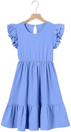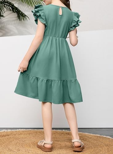 blibean Teen Girls Dresses Kids Double Layer Ruffle Sleeve Dress Size 6-15 Years