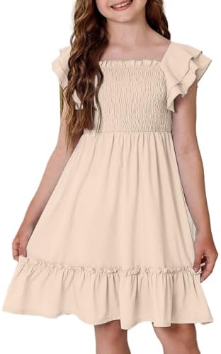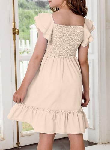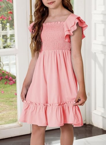 Arshiner Girls Dresses Square Neck Cut Out Shirred Party Cute Tween Dress