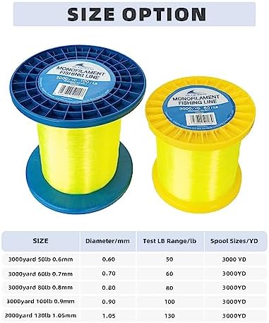 BLUEWING Monofilament Fishing Line 6,8,10,12,15,20,25,30,40,50,60,80,100,130,250,300,400 lbs, 50,100,500,1000,3000 Yards Invisible Thin Diameter Mono Fishing Line Fishing Wire String, Clear