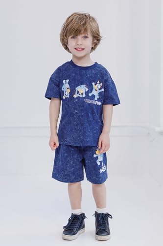 Bluey Boys Vintage Drop Shoulder T-Shirt and Shorts Outfit Set Toddler to Little Kid