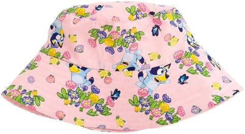 Bluey Floral Girls Dress and Bucket Sun Hat Toddler to Big Kid