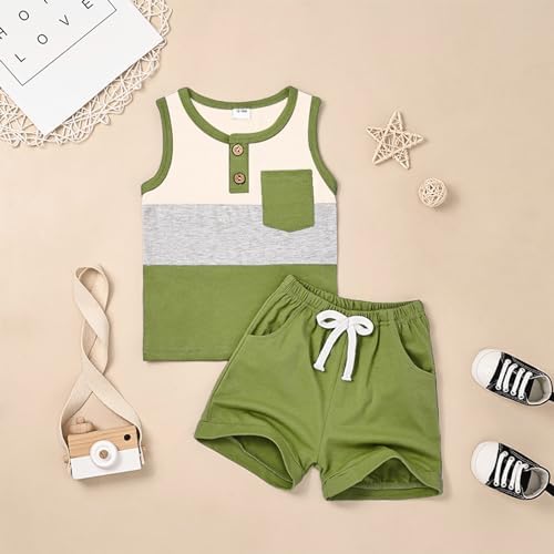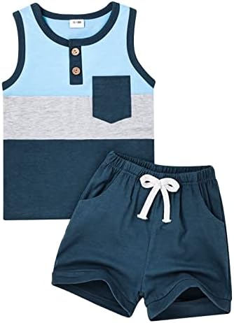 Boy Clothes Toddler Baby Boys Summer Outfits Sleeveless Patchwork T-Shirt Shorts Set 6 Months-4T