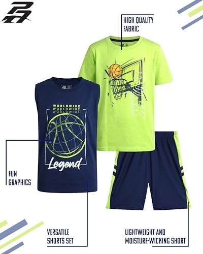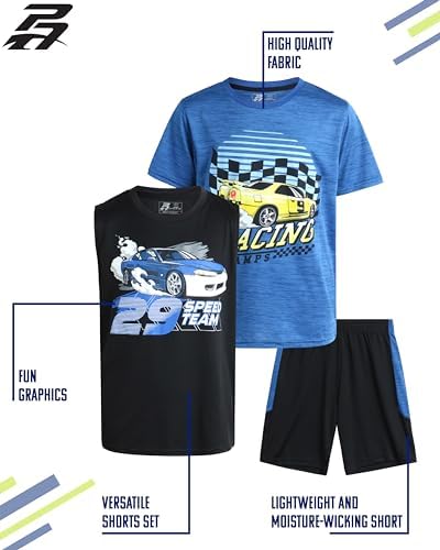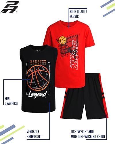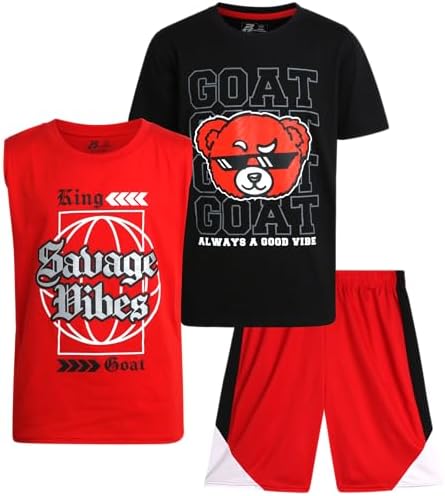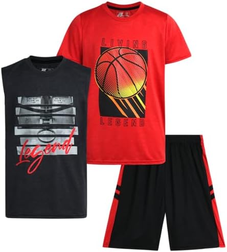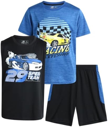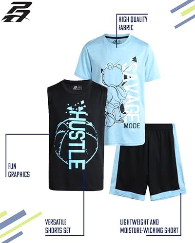 Boys’ Active Shorts Set – 3 Piece Dry Fit T-Shirt, Tank Top, and Basketball Shorts (8-16)