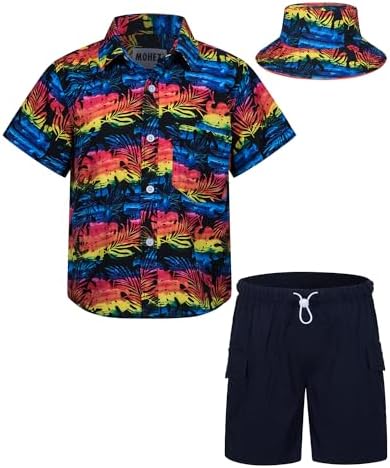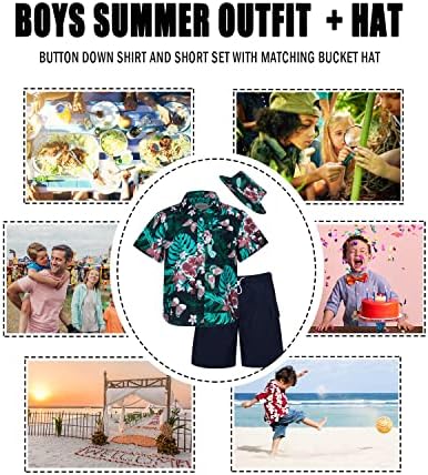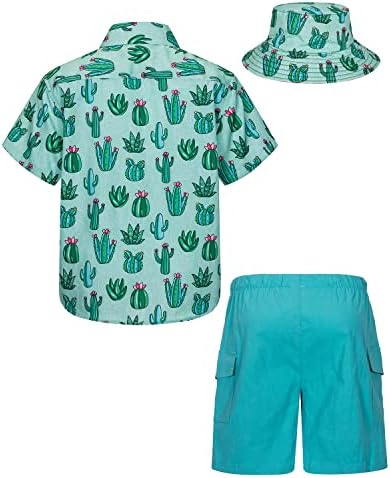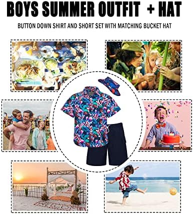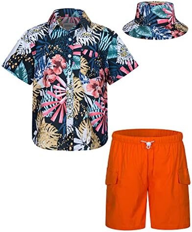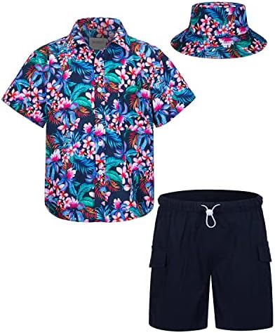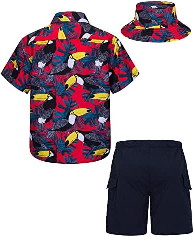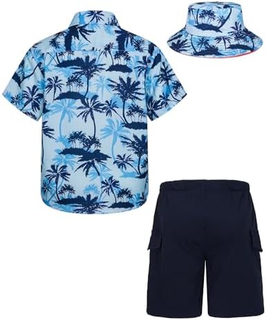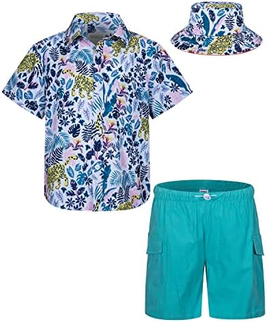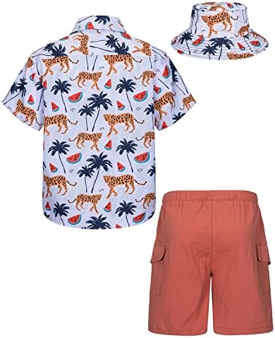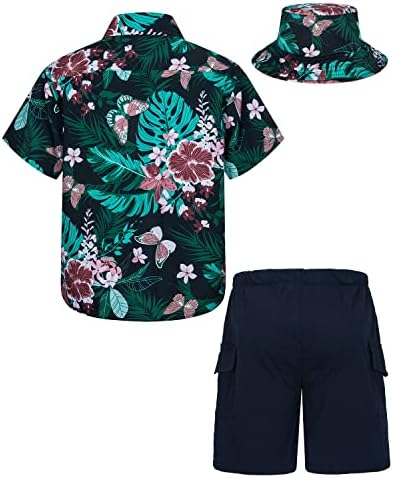 Boys Hawaiian Shirt and Short Set Summer Outfit Kids 2 Piece Clothes Set With Bucket Hat