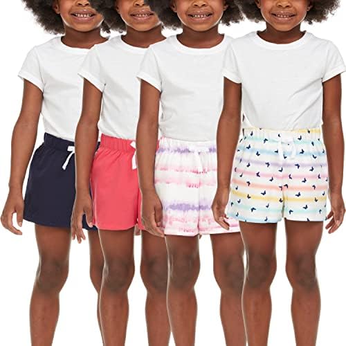 BTween 4-Pack Girls Shorts - Cotton French Terry Shorts for Girls - Kids Lounge, Sleep and Play Summer Clothing
