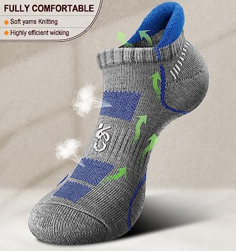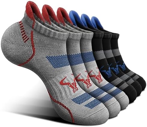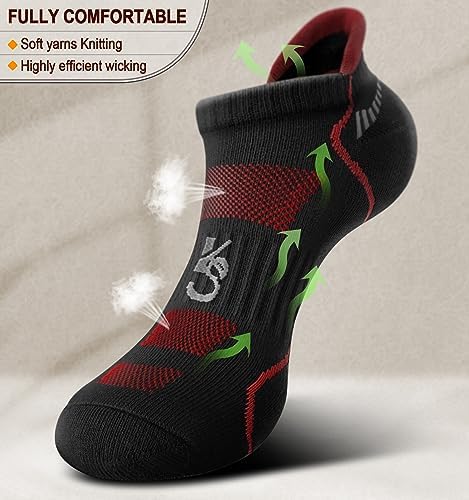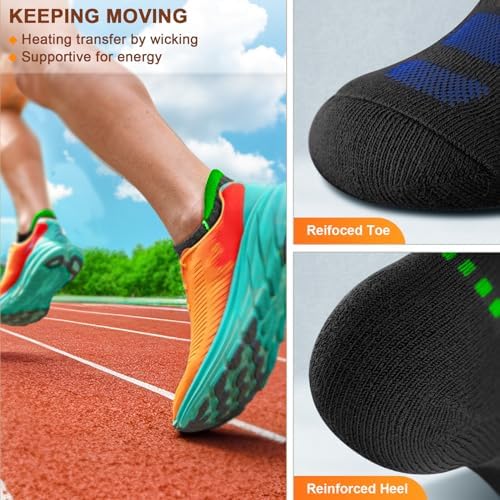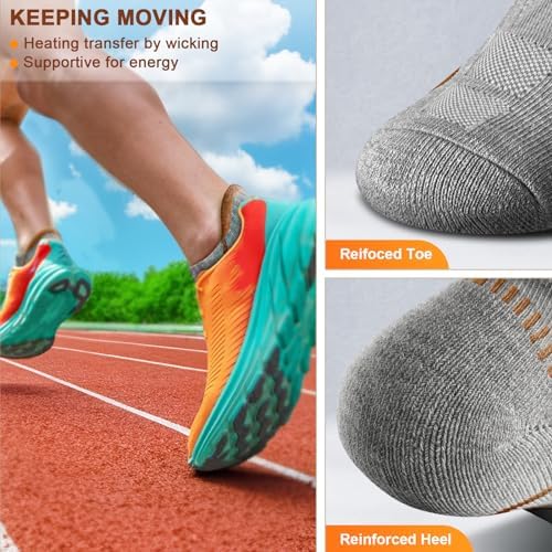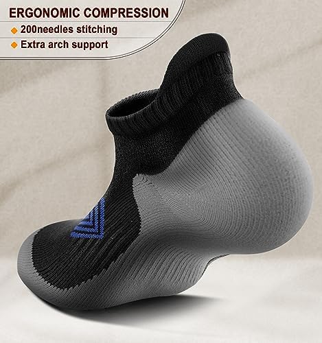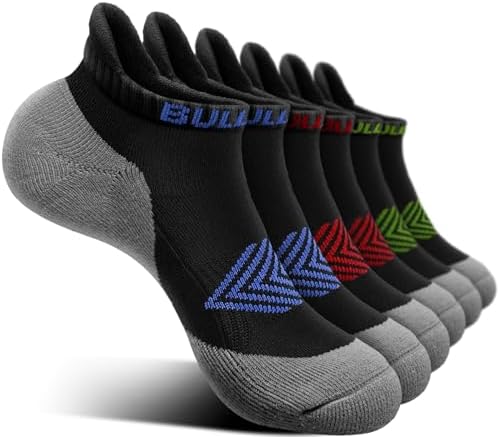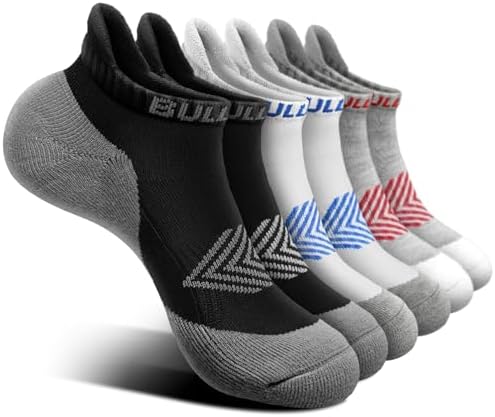 BULLIANT Men Running Socks 6Pairs-Ankle Athletic Socks Wicking Cushioned for Men Walking-Arch Compression Support