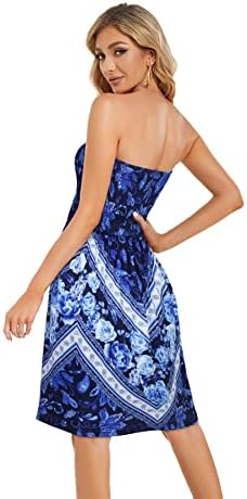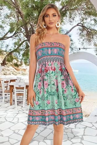 CHICGAL Summer Dresses For Women Beach Cover Ups Strapless Boho Floral Print Sundress