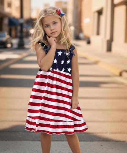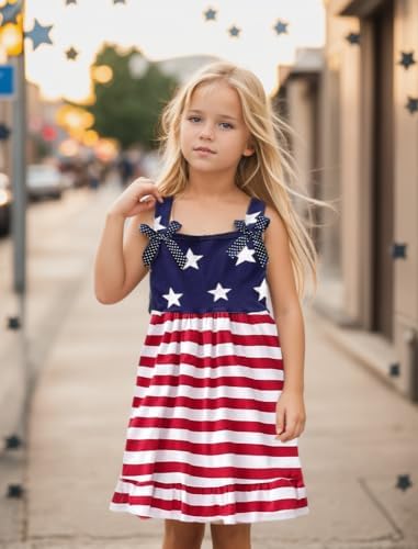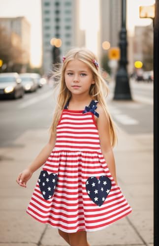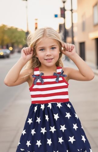 CM-Kid Little Girls Dress Summer Toddler Girl Clothes 4th of July Dress Kids 2-8 Years