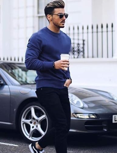 COOFANDY Men's Crew Neck Sweater Slim Fit Lightweight Sweatshirts Knitted Pullover for Casual Or Dressy Wear