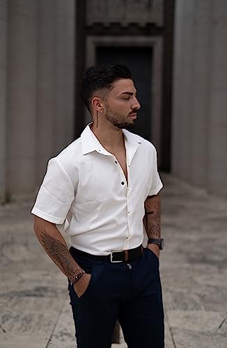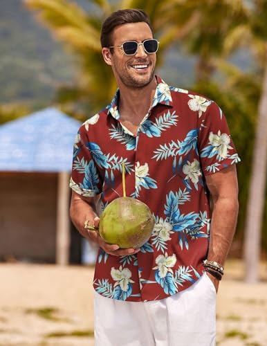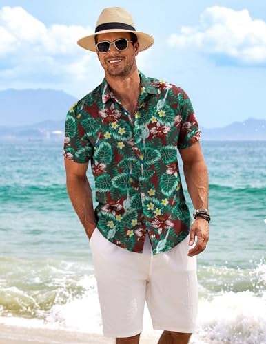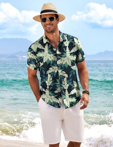 COOFANDY Men's Linen Shirts Short Sleeve Casual Shirts Button Down Shirt for Men Beach Summer Wedding Shirt